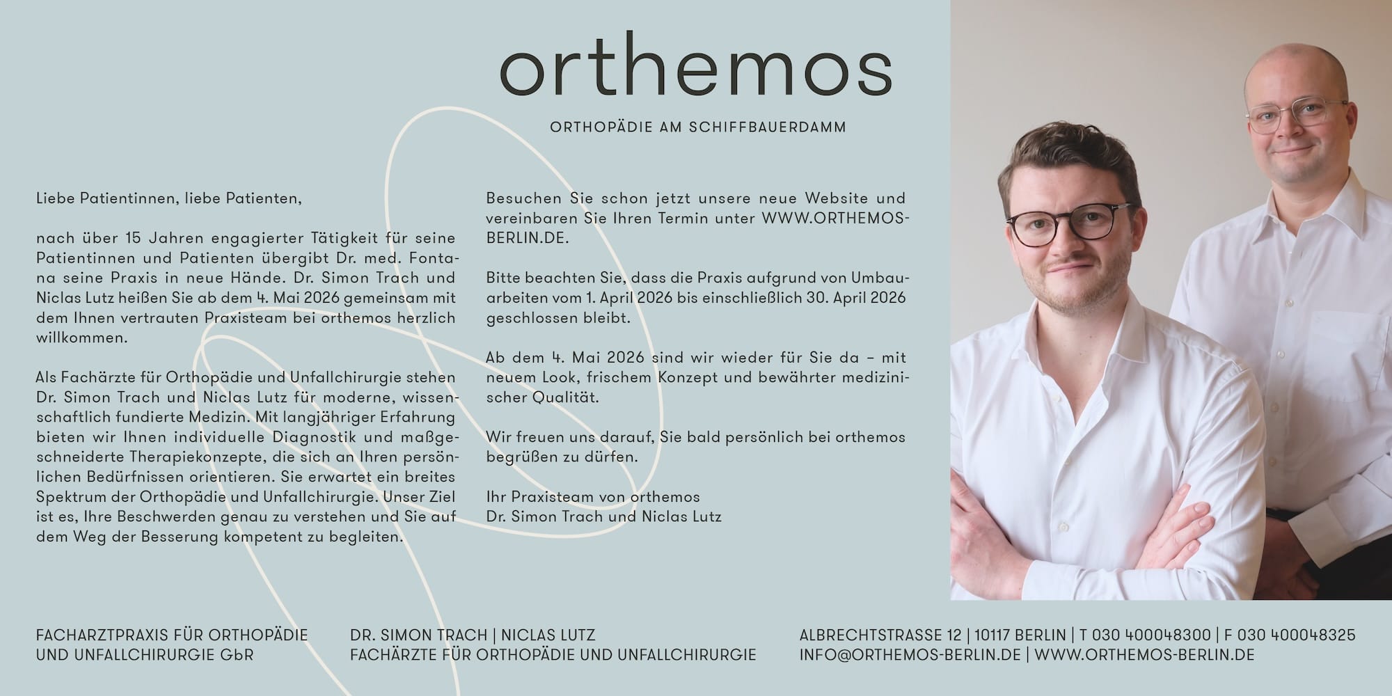 Termine können Sie weiterhin über doctolib.de oder telefonisch unter 030 4000 48 300 vereinbaren.